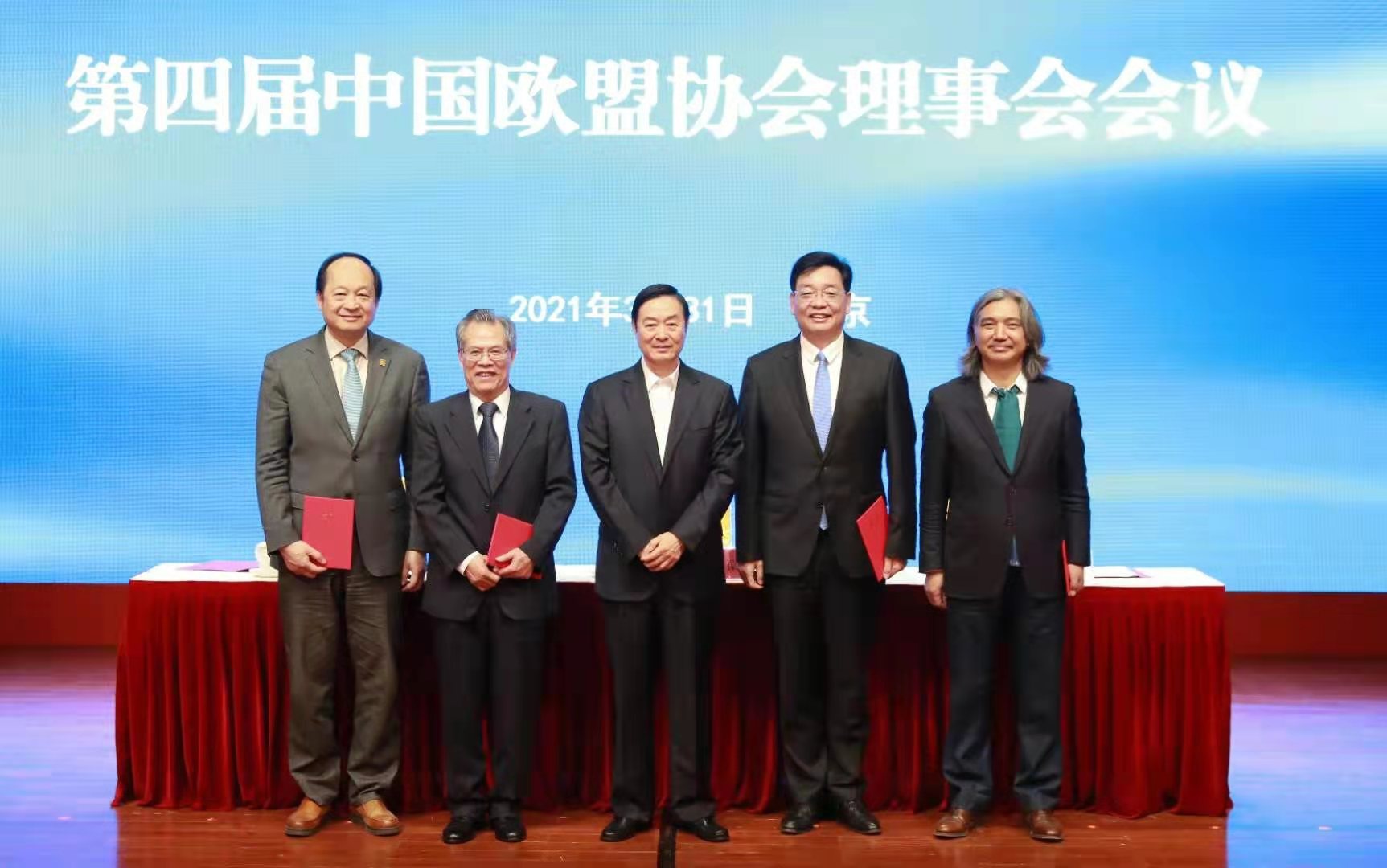 On March 31, 2021, The 4th Meeting of the Council of European Union Association (CEUA) in China was held in Beijing. Liu Qibao, vice-chairman of the National Committee of the Chinese People's Political Consultative Conference (CPPCC), was elected chairman of the China-Europe Association council and delivered a speech. Liu Qibao issued HNCA Party Secretary and Chairman Zhang Mingchao with the certificate of director. Zhang Mingchao spoke on behalf of the economic council during the meeting.