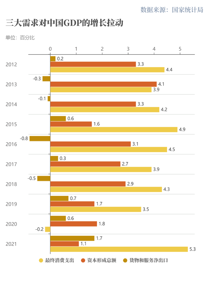 十年間,中國經濟結構調整取得扎實成效。中國制造業增加值占全球比重從22.5%提高到近30%,高技術制造業和裝備制造業占規模以上工業增加值比重分別從2012年的9.4%、28%提高到2021年的15.1%和32.4%;最終消費支出對經濟增長的貢獻率2021年達到65.4%,比2012年提高10個百分點,成為經濟增長第一拉動力;固定資產投資年均增長9.4%,有效支撐經濟平穩運行,在促進經濟增長、優化供給結構中的關鍵作用不斷增強。