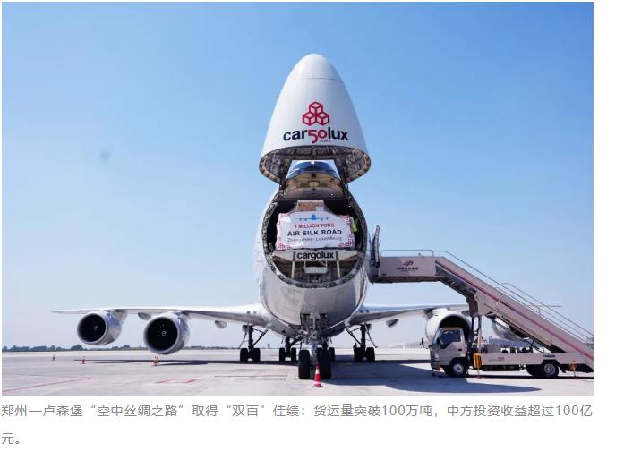 2014年1月,河南航投收購盧森堡貨航35%股權(quán)簽約儀式在鄭州舉行。同年6月,首條鄭州—盧森堡國際貨運航線開通,同年11月,盧森堡貨航鄭州航線貨運量就突破1萬噸;2015年11月,貨運量累計突破5萬噸,國際貨運量、國際貨運航線數(shù)、航班數(shù)量、國際通航點等主要指標躍居鄭州機場首位;2016年6月,累計貨運量突破10萬噸;2019年5月,50萬噸;2021年8月,80萬噸,2023年6月突破100萬噸。
