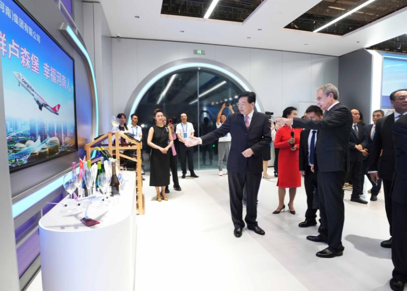論壇開始前,與會(huì)嘉賓參觀了主題展臺(tái)。在中豫航空集團(tuán)展臺(tái)前,嘉賓們被來自盧森堡的“申根精神”葡萄酒、法國(guó)知名品牌水晶杯、德國(guó)繪有“絲綢之路”元素的骨瓷等產(chǎn)品吸引;詳細(xì)了解了鄭盧“空中絲路”在中歐互聯(lián)互通、經(jīng)貿(mào)往來中發(fā)揮的橋梁作用。