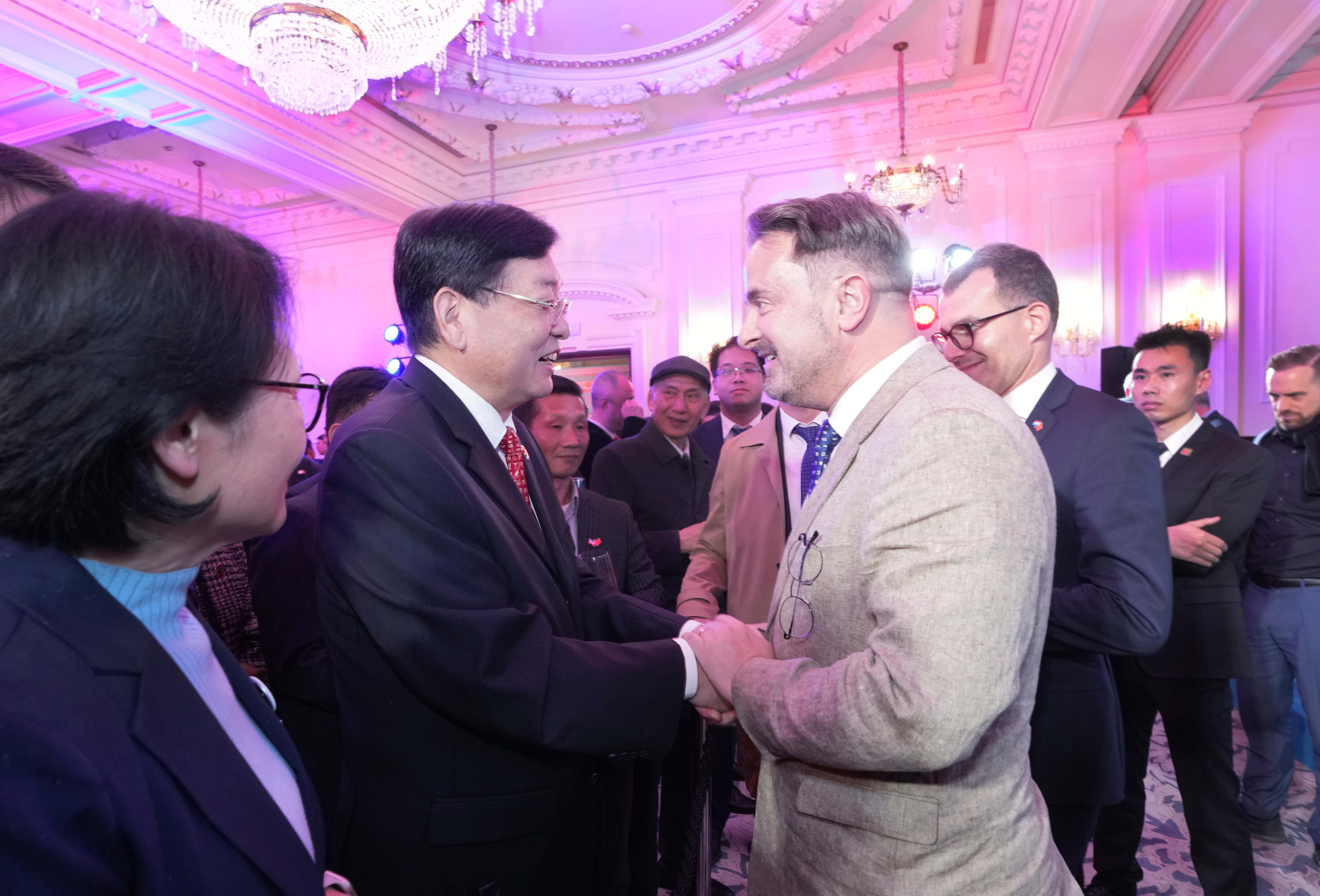 11月27日,盧森堡-中國(guó)(上海)商務(wù)合作論壇在上海舉行。盧森堡副首相兼外交、外貿(mào)大臣格扎維埃·貝泰爾,盧森堡經(jīng)濟(jì)、中小企業(yè)、能源和旅游大臣萊克斯·德勒斯,駐華大使盧睿朗等出席。中豫航空集團(tuán)黨委書(shū)記、董事長(zhǎng)張明超受邀參加,并在盧森堡大公國(guó)商貿(mào)團(tuán)訪華官方招待會(huì)上與貝泰爾、盧睿朗等就促進(jìn)鄭盧“空中絲綢之路”建設(shè)溝通交流。