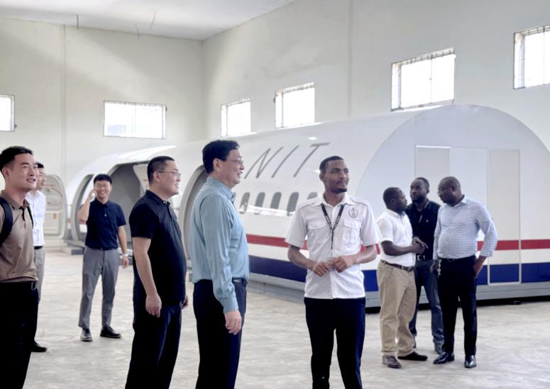 12月13日,中豫航空集團代表團來到坦桑尼亞國家交通大學,與校長Prosper L. Mgaya等座談。雙方圍繞航投飛宇航空模擬訓練設備交付使用情況、坦桑尼亞航空市場及航空人才培訓、學科建設和推進航空院校建設合作等深入交流。代表團介紹了河南省及中豫航空集團航空教育培訓發展現狀,尤其是乘務訓練設備研發生產、飛行及乘務培訓的最新成果。Prosper L. Mgaya表示,坦桑尼亞國家交通大學高度認可航投飛宇生產交付的訓練設備,希望與中豫航空集團共同做強航空人才教育培訓。會后,代表團來到該校的航空模擬訓練館,實地了解航投飛宇2022年交付的B737-800客艙訓練設備使用狀況和訓練館整體運行情況。