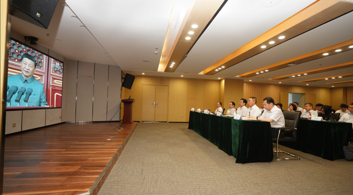 7月1日上午8時,慶祝中國共產黨成立100周年大會在北京天安門廣場隆重舉行。中共中央總書記、國家主席、中央軍委主席習近平發表重要講話。河南航投領導班子成員、各級黨組織負責人及黨員代表60余人在航空經濟服務中心4樓多功能廳收聽收看大會盛況。