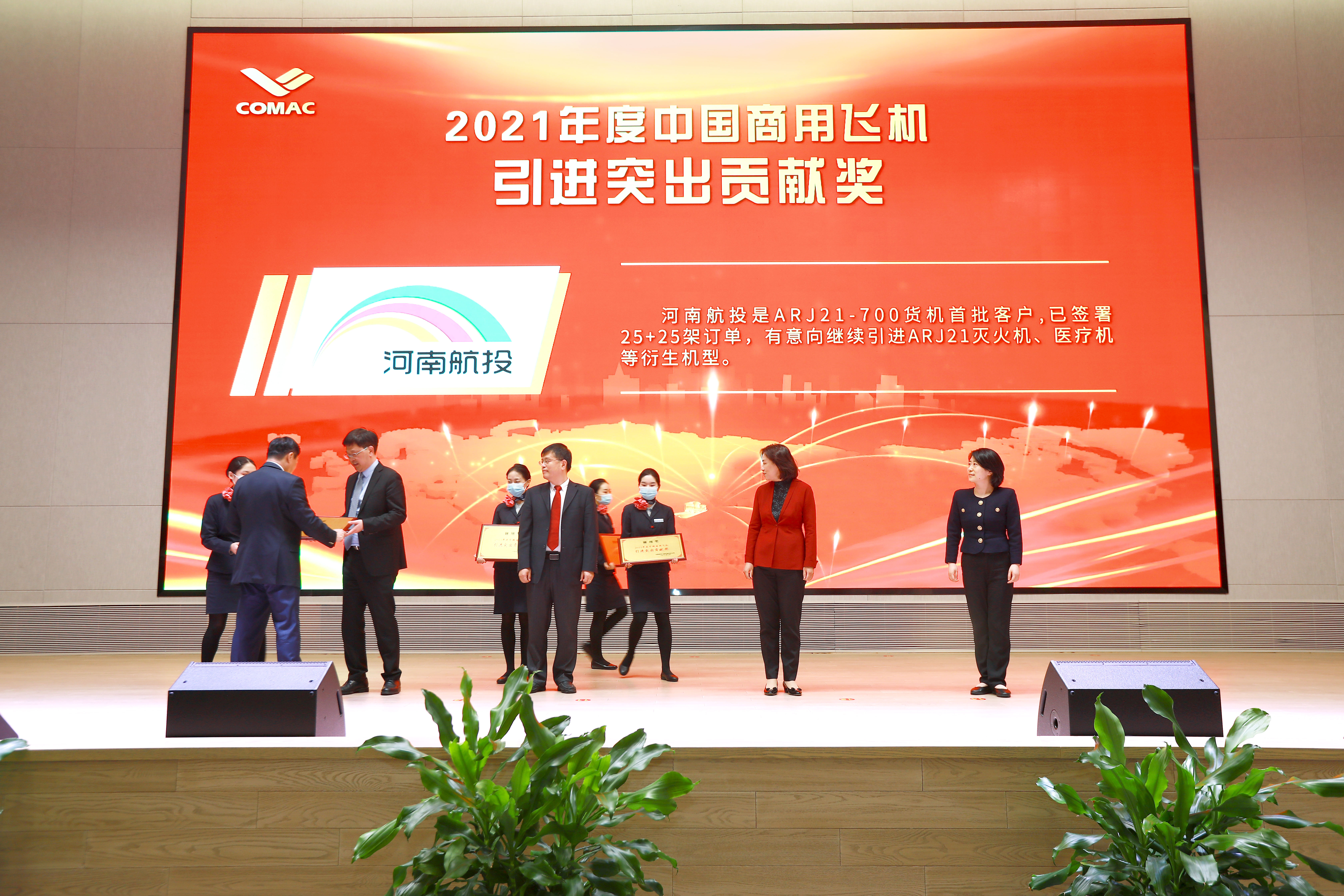 10月26日,中國商飛2022年度客戶大會在嘉興召開。會上頒發(fā)了第一屆中國商用飛機“翱翔獎”。由中國商飛黨委書記、董事長賀東風為河南航投頒發(fā)“翱翔獎—— 2021年度中國商用飛機引進突出貢獻獎”,這是中國商飛首次將國產(chǎn)商用飛機相關獎項授予河南本土企業(yè),對國產(chǎn)貨機進一步拓展市場具有重要意義。