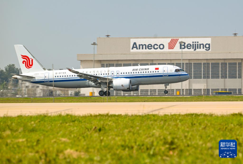 8月29日,國航首架C919國產大飛機降落北京首都國際機場。新華社記者 李賀 攝