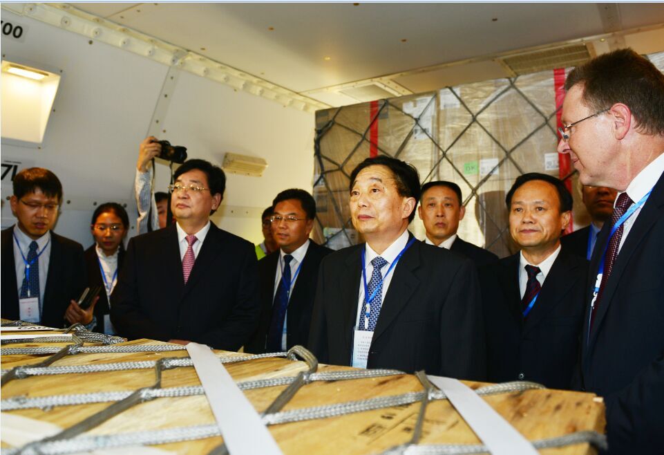 出席盧貨航45周年慶祝儀式的有河南省副省長李亞、省長助理安惠元、省政府副秘書長馬剛。河南航投董事長、黨委書記張明超,總經理、副董事長、黨委副書記劉建葆,公司領導班子其他成員及相關業務負責人參加了慶祝儀式。適逢盧貨航2015年全球經理人大會在鄭州召開,前來參會的50多位來自全球各個地區的區域經理和重要部門負責人與中方人員一起,在鄭州機場見證了這一具有歷史意義的時刻?,F場工作人員向機組人員獻上鮮花,隨后,雙方代表登機視察。