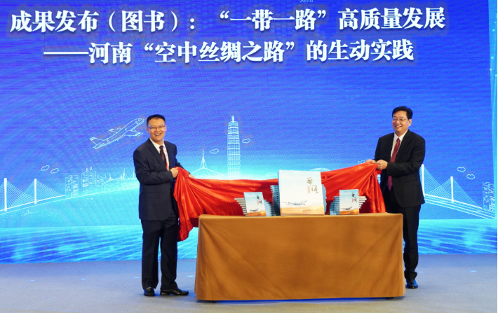 在隨后的成果發布環節,河南航投總經理、黨委副書記、副董事長劉建葆代表公司分別與中航通用飛機有限公司(以下簡稱航空工業通飛)、法國Simaero控股公司、中國檢驗認證(集團)公司(以下簡稱中檢集團)、京東集團簽署戰略合作協議。黃強及中外嘉賓代表見簽。趙磊主持發布圖書《“一帶一路”高質量發展——河南“空中絲綢之路”的生動實踐》。該書以紀實筆觸全方位記錄了河南主動融入“一帶一路”建設,向天尋路,架起一條互利各國交通運輸、聚合經貿文化發展的“空中絲綢之路”,真實展現出河南打造內陸開放新高地、實現中原更出彩的新局面。
